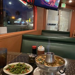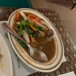Came on Sunday night and ordered large Tom yum chicken, bbq chicken, crying tiger, crispy pork eggplant, and Penang curry beef. All dishes were tasty but ordered Penang curry to be medium spicy and it was mild. Kids liked it but adults missed the spice so we let it be. Place is clean and unassuming with bars upon entry. It food was good and lots of take out. Service was good since we were the only table. Price was ok compared to portion.